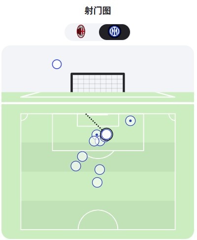 (射门分布对比国米在禁区外的居多)