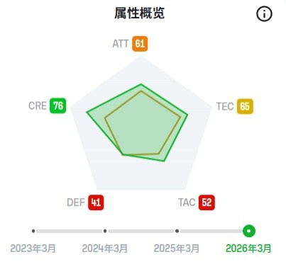 (本赛季的巴雷拉数值下降比较大,绿色:之前,黄色:现在)
